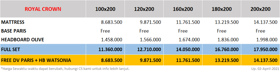 Fitur dan Spesifikasi yang ada pada Spring Bed Elite Royal Crown adalah :