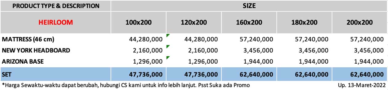 Fitur dan Spesifikasi yang ada pada Spring Bed Lady Americana Heirloom adalah :