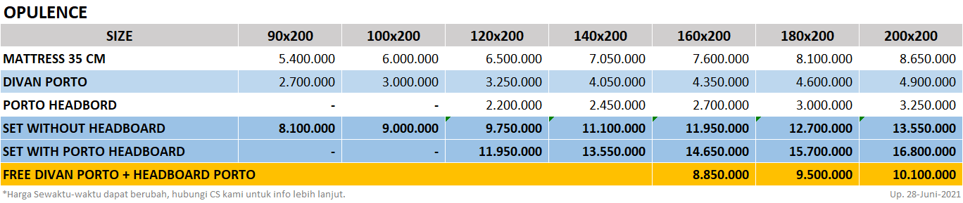 Fitur dan Spesifikasi yang ada pada Simmons tipe Opulence adalah: