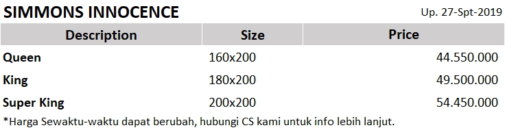 Informasi Produk tipe Innocence dari Simmons Indonesia.