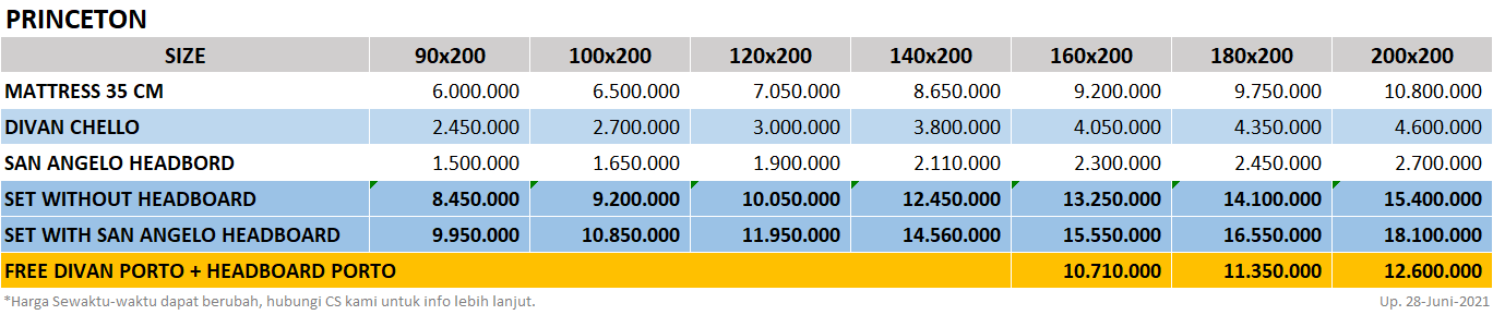 Informasi Produk tipe Princeton dari Simmons Indonesia.