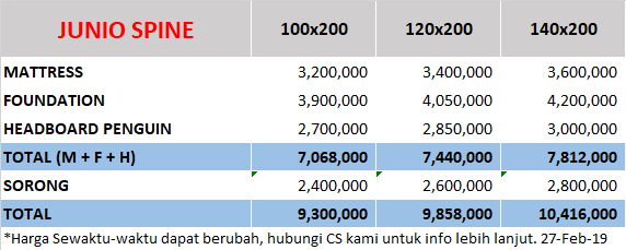 Fitur dan Spesifikasi yang ada pada Spring Bed Theraspine Junio Spine adalah :