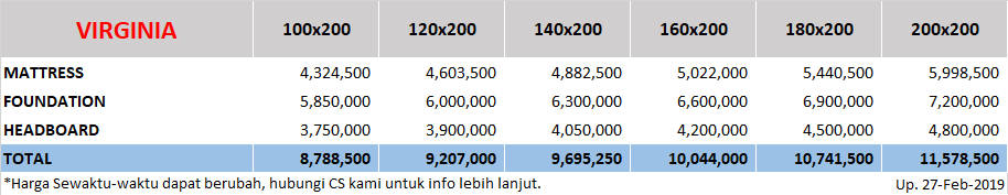 Fitur dan Spesifikasi yang ada pada Spring Bed Theraspine Tipe Virginia adalah :